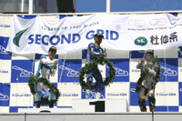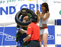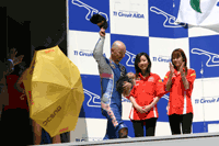 ピレリの方から、副賞のタイヤを頂き、がっちり握手です。 | ![]() |