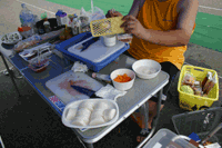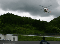 車検を待つ間、慌しい動きが。車検場前に並ぶ私達にオフィシャルから注意を促され、 やがてヘリが到着しました。大怪我をされた方があるようです。 装備を引き取りに来られた方が、「足のピーーッがピィーーーッ(放送自粛)」。 | ![]() |