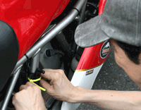 車検風景です。今回も特に問題無く、パスしたようです。 |