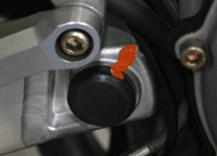 これは、スイングアームの軸です。こんなところ、初めてですねー。 |