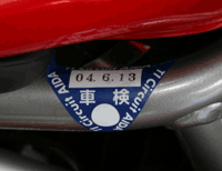 頂きました、合格シールです。タンク下のフレームに貼って頂きました。 |