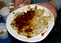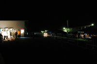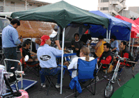 そしていつものようになんとなく、前夜祭が始まりました。MAKOTOさんの右の、 ポニーテールの大きな背中は、岩国から参加のジェームズさんです。 いろいろ差し入れして頂きました。有難う御座いました! | ![]() |