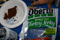 そのジェームズさんの差し入れの一つ、ターキージャーキーです。ビーフじゃありません、 ターキーです。しかも”テリヤキ”味です。初めてですが、イケます! |
