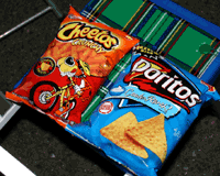 大きさは普通ですが、日本じゃちょっと見ない色をしたパッケージの、チートスとドリトスです。 |