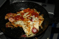 サラミなどの具を載せて、ソースをかけて、、、 |