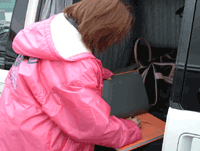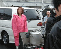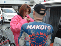 レインタイヤに交換しています。その向こうでは、MAKOTOさんがクシタニの方々にJuneさんを紹介しています。 | ![]() |