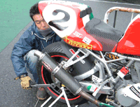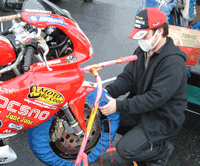 本日のチーフ・メカの高山さんです。今日のために、横浜から駆け付けて下さいました。有難う御座います! 普段の私達には見られない光景、トルクレンチを使うの図です。 | ![]() |