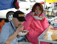 お昼ご飯はスープカレーです。お二人並んで腹ごしらえです。 | ![]() |