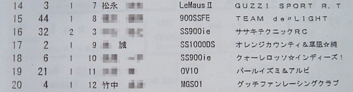 グリッドは5列目の一番左です。右斜め前に松永選手、同じ列の右端に竹中選手がいます。 真っ向勝負です! |