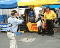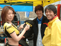続いて衣装をお貸し頂いたピレリさんを訪問です。キャップにサインを入れています。 | ![]() |