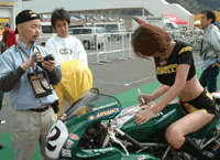 そして決勝用のタンクカバーにサインをして貰います。 | ![]() |