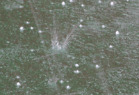 さらに雨が激しくテントを打ちます。ん?なんか跳ねてる?と思えばこれ(←)です。ヒョウです! レース進行もさすがに中断、グリッド上のライダー達はピットに避難させられます。 | ![]() |