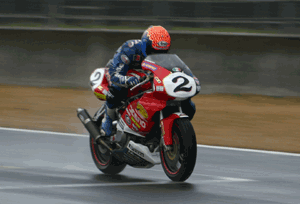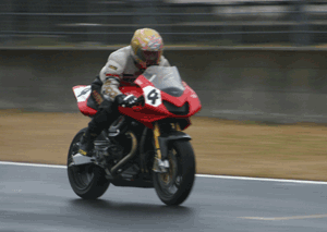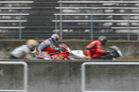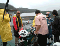 ふがいないレースをしたと、反省しきりのMAKOTOさん。 グリッドでの挙動の真相は、なんとグリッドに着いた時にバランスを崩し、 踏ん張った瞬間に左のふくらはぎがツっちゃったそうです。そりゃしょうがない! | ||