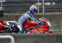 グリッドに戻って来たMAKOTOさん、何やら左足を気にしています。 | ![]() |
