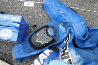 激闘の証です。バンクセンサーを通り越して、ツナギの皮まで削っちゃいました。 |