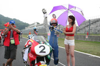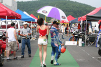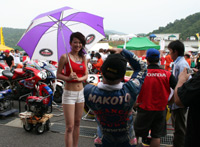 なんてことをしている間に、もう次のレースへ向かって出陣です。 HARUNAさんのお衣装が替わっています。今度はドカティバージョンです。 |